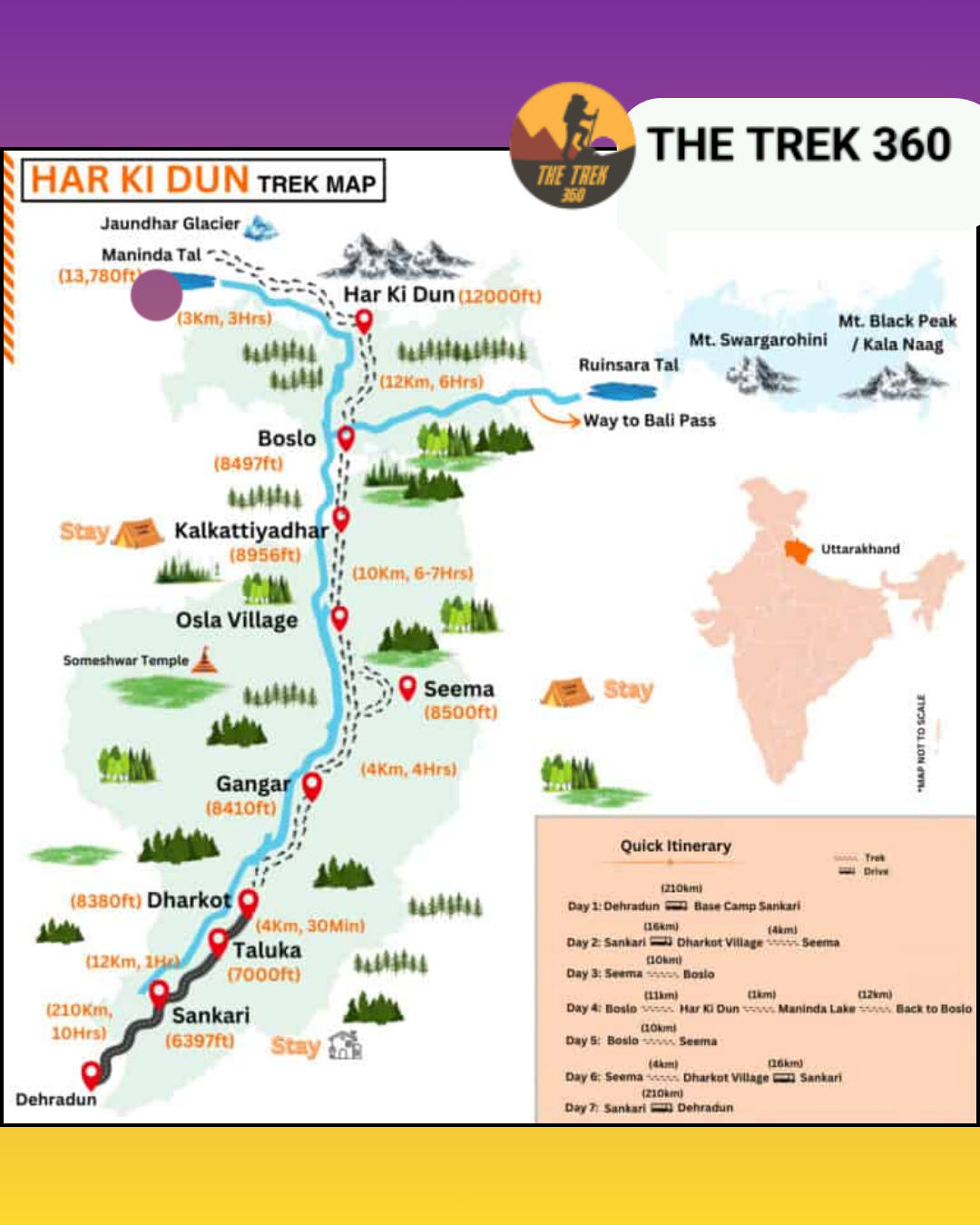 With The Trek 360, the Har Ki Dun Trek is organized with experienced local guides, comfortable stays, proper meals, and strong safety support. It is an ideal trek for those looking for the best trekking experience in Uttarakhand with natural beauty, culture, and history combined.